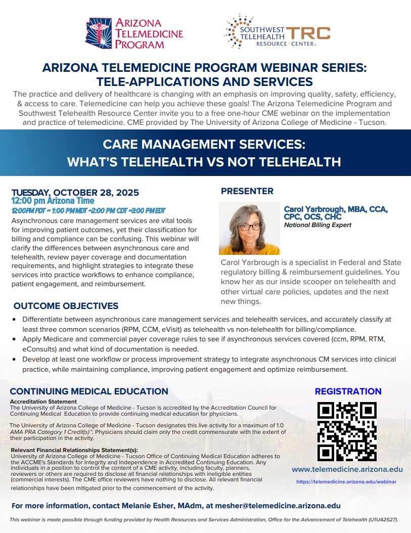 - Differentiate between asynchronous care management services and telehealth services, and accurately classify at least three common scenarios (RPM, CCM, eVisit) as telehealth vs non-telehealth for billing/compliance.